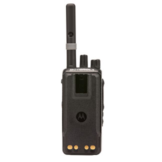 Available in UHF and VHF frequency bands, the DP2600e is a non-display model that features 128-channel capacity, three programmable buttons and IP67 specifications for water and dust protection.